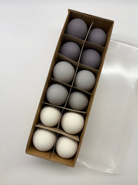12 Gänseeier natur "Chalk", 3 Farben, H8cm, grau matt, mix