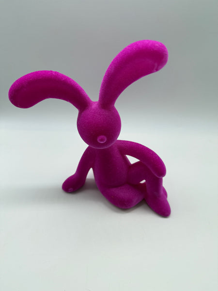 1x Hase, Hasenfigur, Ostern, geflockt, halb liegend, 23cm hoch, pink wie Abbildung