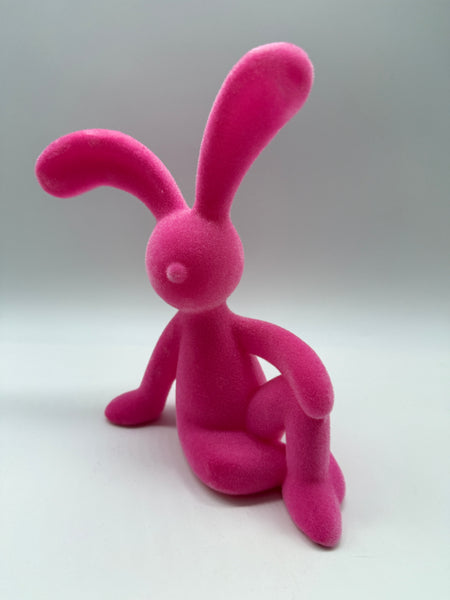 1x Hase, Hasenfigur, Ostern, geflockt, halb liegend, 23cm hoch, rosa wie Abbildung