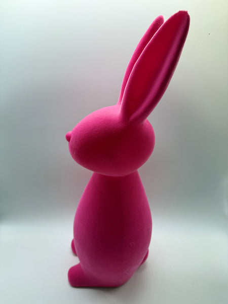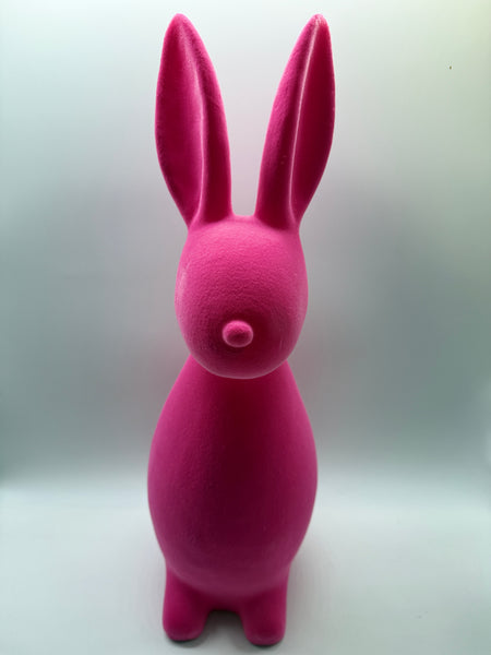 1x Hase Poly 48cm hoch, stehend, beflockt, rosa wie Abbildung