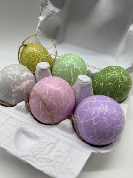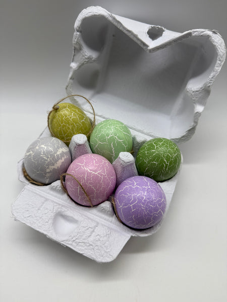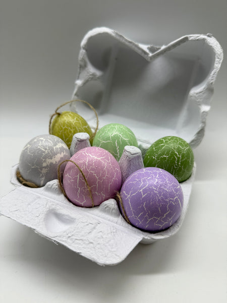6 Stück, Hühnereier, Hänger, gesprenkelt, bunt, mix, Ostereier, leer, Osterdekoration im 6er Eierkarton/Schachtel wie Abbildung