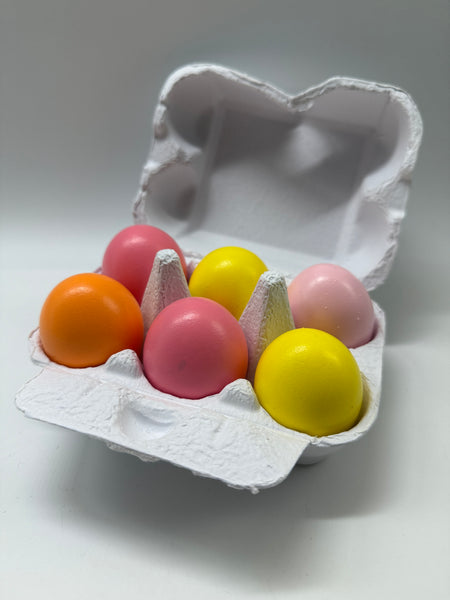 6 Stück, Hühnereier, orange, gelb, rosa, mix Ostereier, leer, Osterdekoration im 6er Eierkarton/Schachtel wie Abbildung
